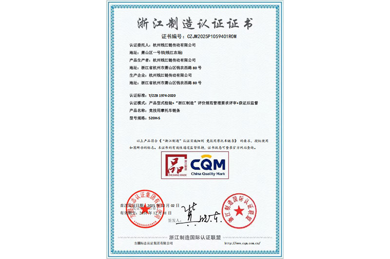 Zhejiang gyártási tanúsítvány