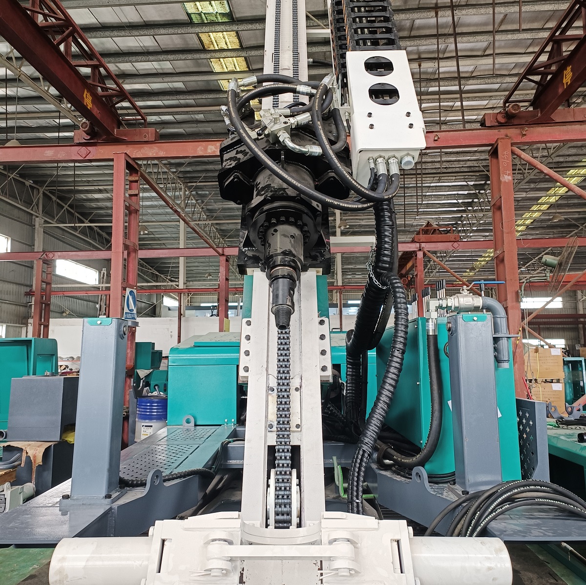 Az állandó áttételi arány mellett a lánchajtás lehetővé teszi a fúrógém pozicionálásának precíz szabályozását, biztosítva a fúrás függőleges helyzetét, ami kritikus követelmény a sziklacsavar megtámasztásához.