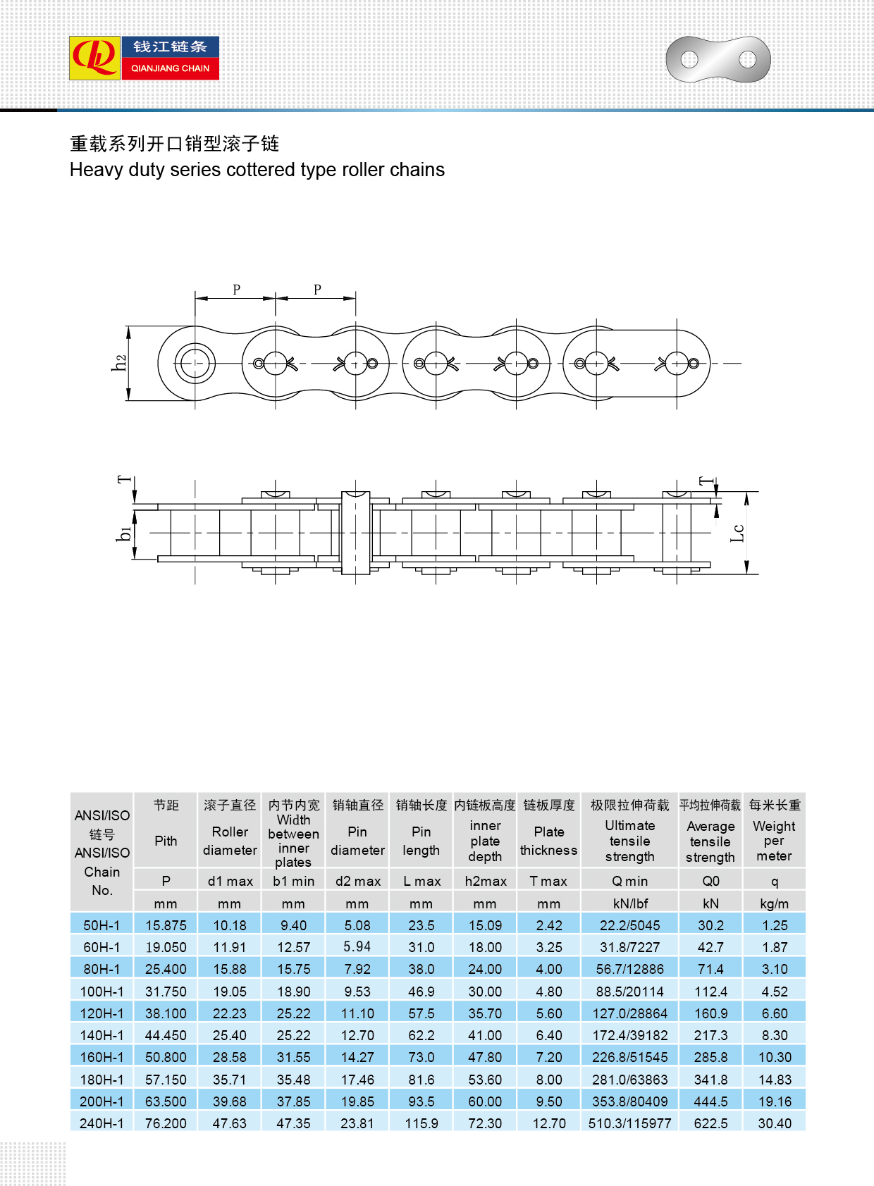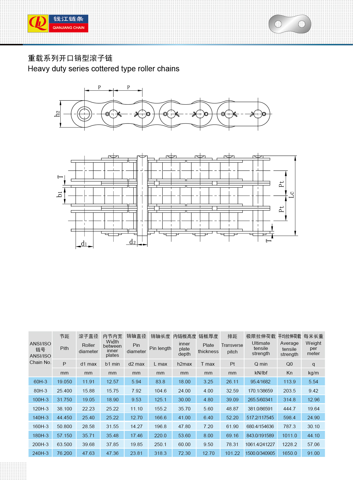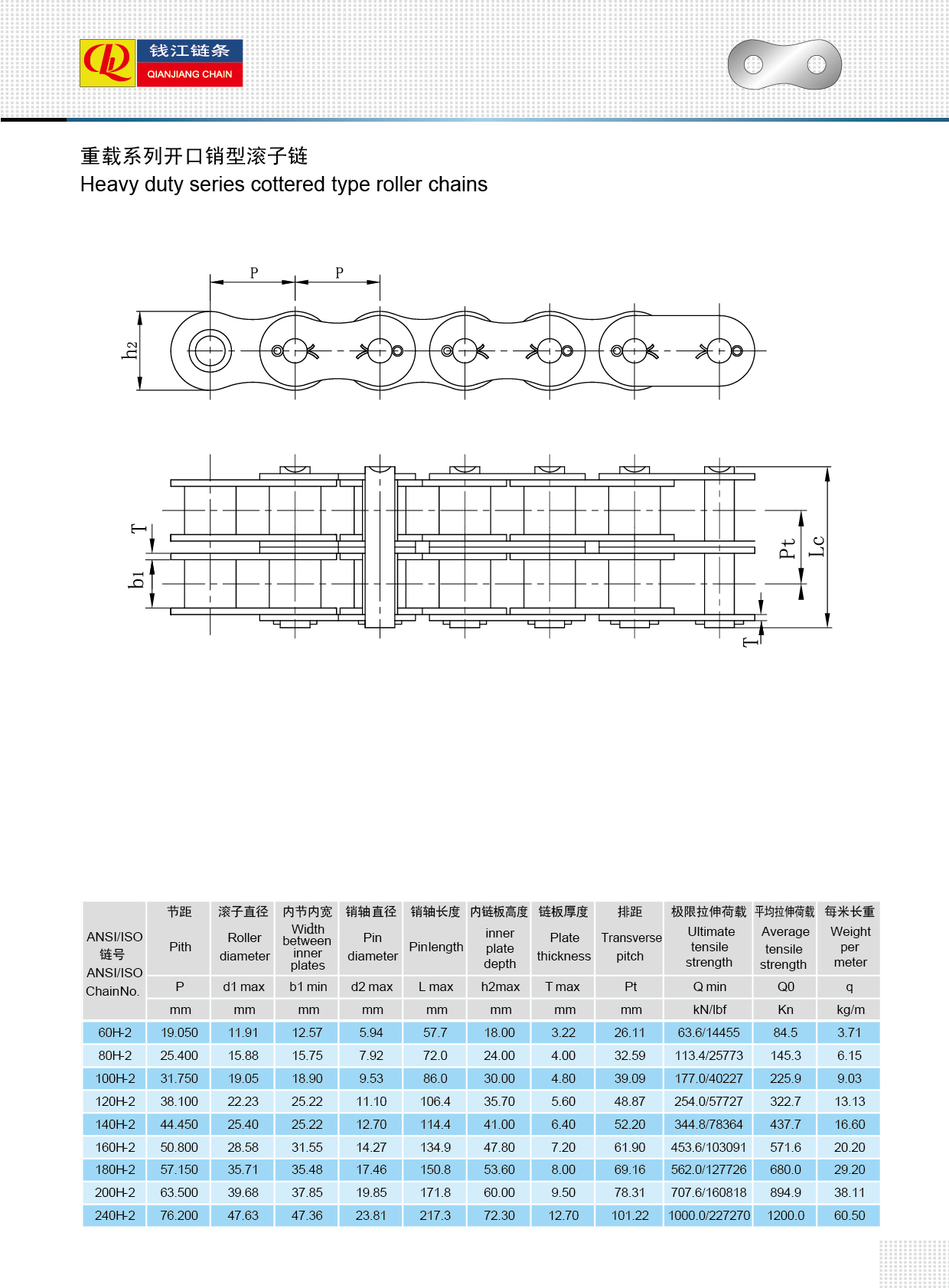 A Heavy Duty Series sajtolt típusú görgős láncokat olyan igényes alkalmazásokhoz tervezték, ahol a megbízhatóság és a tartósság elengedhetetlen. A sasszeges csaprendszerrel kialakított láncok erősséget és teljesítményt nyújtanak a hagyományos görgős láncokhoz képest, így ideálisak nagy teherbírású gépekhez, szállítószalagokhoz és ipari berendezésekhez. A csapszeges típus biztosítja, hogy minden csap biztonságosan rögzítve legyen, csökkentve a kilazulás kockázatát és egyenletes működést biztosítva az idő múlásával.