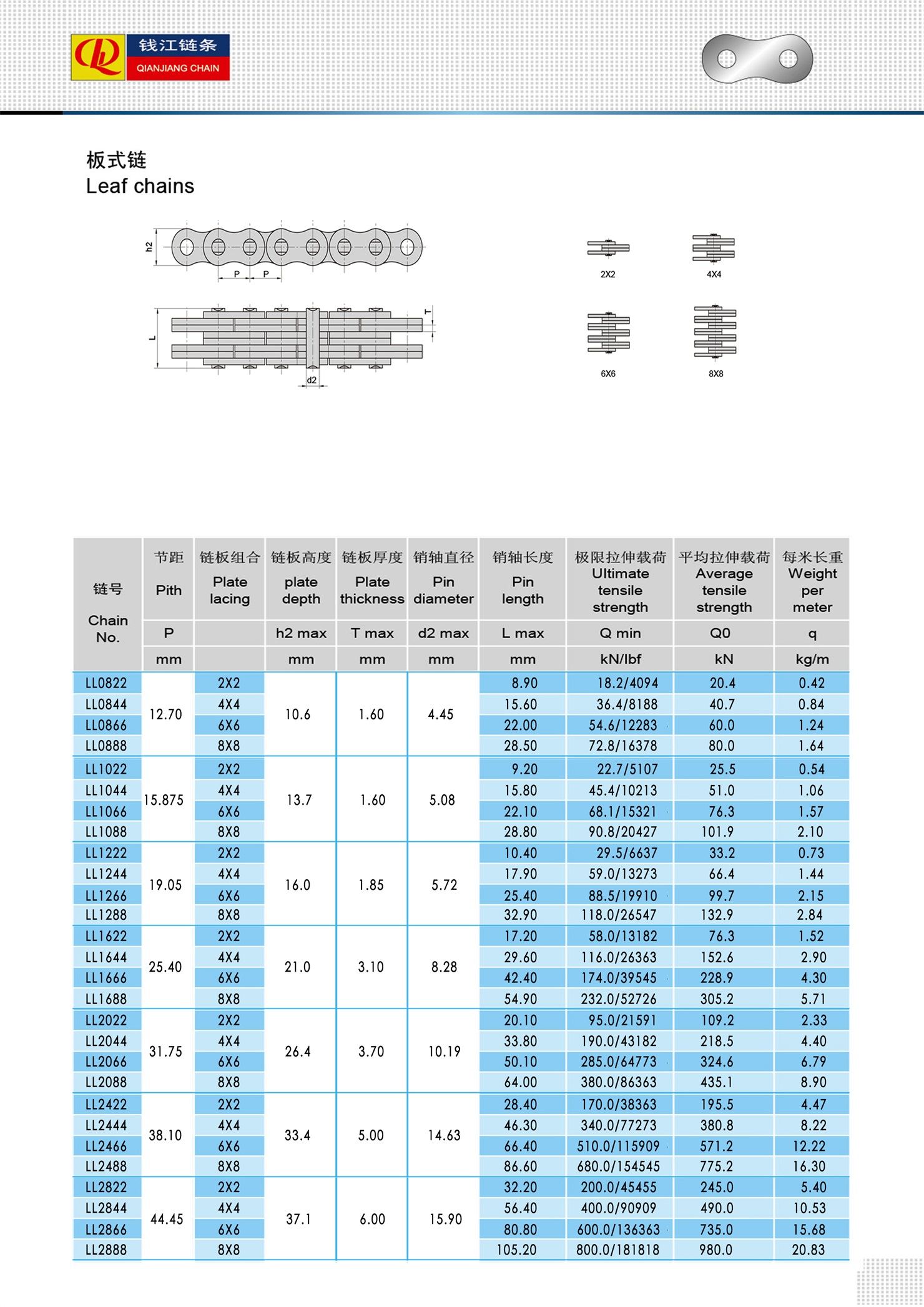 (LL sorozat) Alacsony karbantartást igénylő, nagy stabilitású levélláncok – úgy tervezték, hogy kivételes teljesítményt nyújtsanak minimális karbantartás mellett. A tartósságra és megbízhatóságra tervezett szárnyláncok prémium anyagokból készültek, amelyek ellenállnak a kopásnak és a fáradásnak, így hosszú élettartamot biztosítanak még igényes környezetben is. Robusztus felépítésük nagy szakítószilárdságot és stabilitást biztosít, így ideálisak nagy igénybevételű alkalmazásokhoz, például targoncákhoz, emelőberendezésekhez és ipari gépekhez.