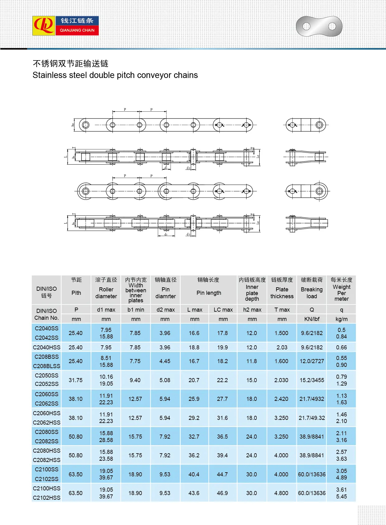 Az erőt és a hosszú élettartamot szem előtt tartva tervezték, a rozsdamentes acél kettős osztású szállítóláncok kiváló minőségű rozsdamentes acélból készülnek, így ellenállnak a korróziónak, a kopásnak és a környezeti feltételeknek. Robusztus felépítésük megbízható teljesítményt biztosít még nagy terhelés mellett is, jelentősen csökkentve a karbantartási költségeket és az állásidőt.